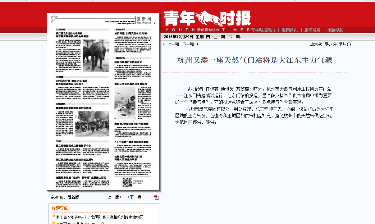 青年時報(bào)——杭州又添一座天然氣門站將是大江東主力氣源